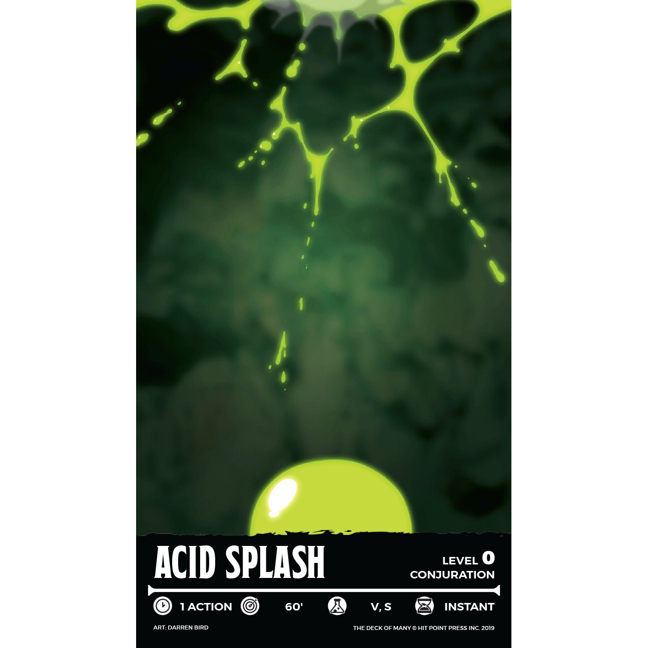 Contents: 30 Tarot Sized Lenticular Cards Acid Splash, Chill Touch, Dancing Lights, Druidcraft, Eldritch Blast, Fire Bolt, Guidance, Light, Mage Hand, Mending, Message, Minor Illusion, Poison Spray, Prestidigitation, Produce Flame, Ray of Frost, Resistance, Sacred Flame, Shillelagh, Shocking Grasp, Spare the Dying, Thaumaturgy, True Strike, Vicious Mockery,+6 Spellcraft cards