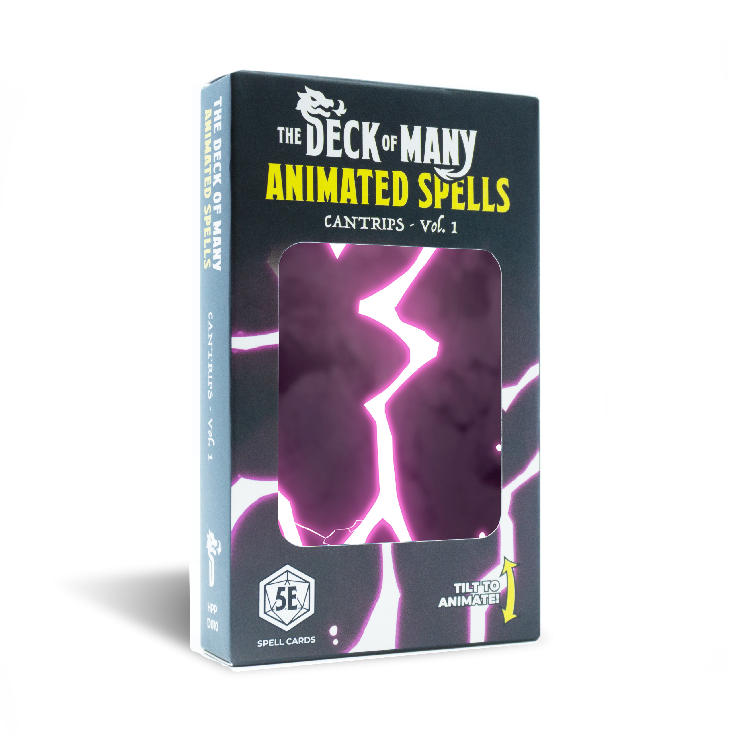 Animated Spells is a tool used to assist Game Masters and players alike in their 5e role-playing campaigns, freeing them from traditional reference books and allowing them to only bring the spells they need. Each card features an original 8 frame looping animation on the front and easy to reference information on the back.