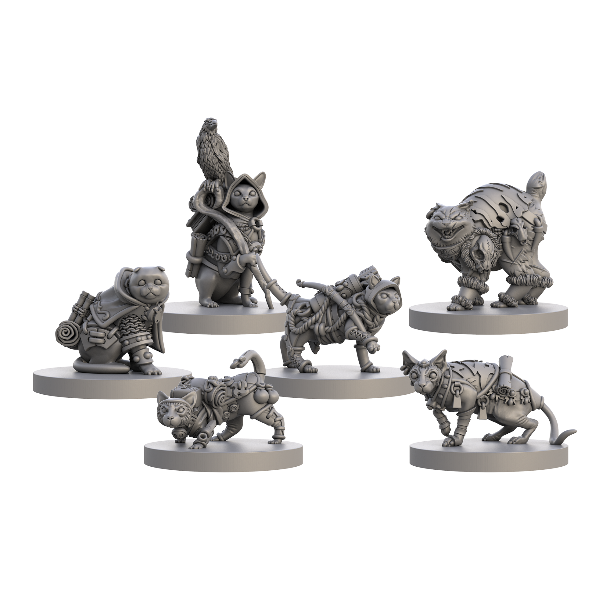 Each miniature has been lovingly designed to represent a different cat breed and RPG fantasy class. ‘Curiosity’ was invented by these cats—they’re full of character and ready for adventure!